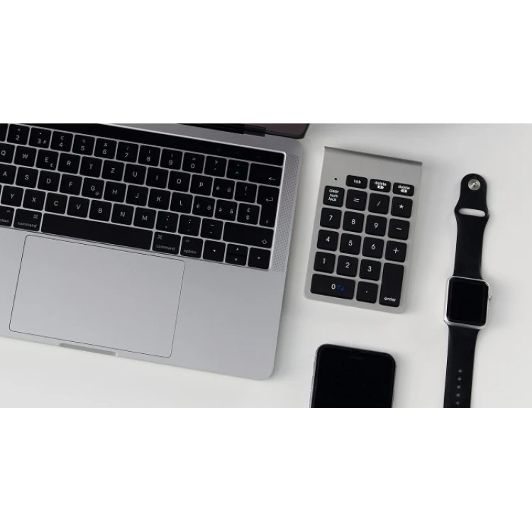 21-key wireless (Bluetooth) keypad for easy and fast working with figures, tables, calculations, spread sheets, etc.