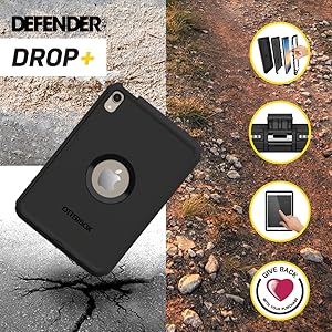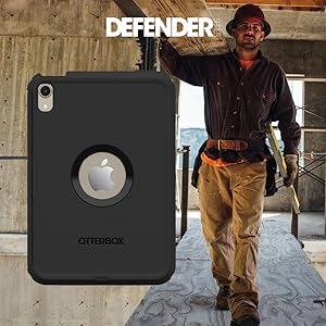 Το εσωτερικό κέλυφος της θήκης Defender είναι κατασκευασμένο από ανθεκτικό σε κρούση πολυανθρακικό που προστατεύει το tablet σας από γρατσουνιές και γρατζουνιές. Ένα προστατευτικό οθόνης είναι ενσωματωμένο στο κέλυφος για προστασία από γρατσουνιές χωρίς να συνεπάγεται ευαισθησία. Το εξωτερικό στρώμα της θήκης Defender διαθέτει ένα στιβαρό κάλυμμα και απορροφά τις κρούσεις, ενώ το ανάγλυφο εξωτερικό παρέχει πρόσθετο κράτημα. Το περιλαμβανόμενο κούμπωμα γύρω από τη θήκη λειτουργεί ως προστατευτικό κάλυμμα στο μπροστινό και πίσω μέρος της θήκης και λειτουργεί ως βάση στήριξης.